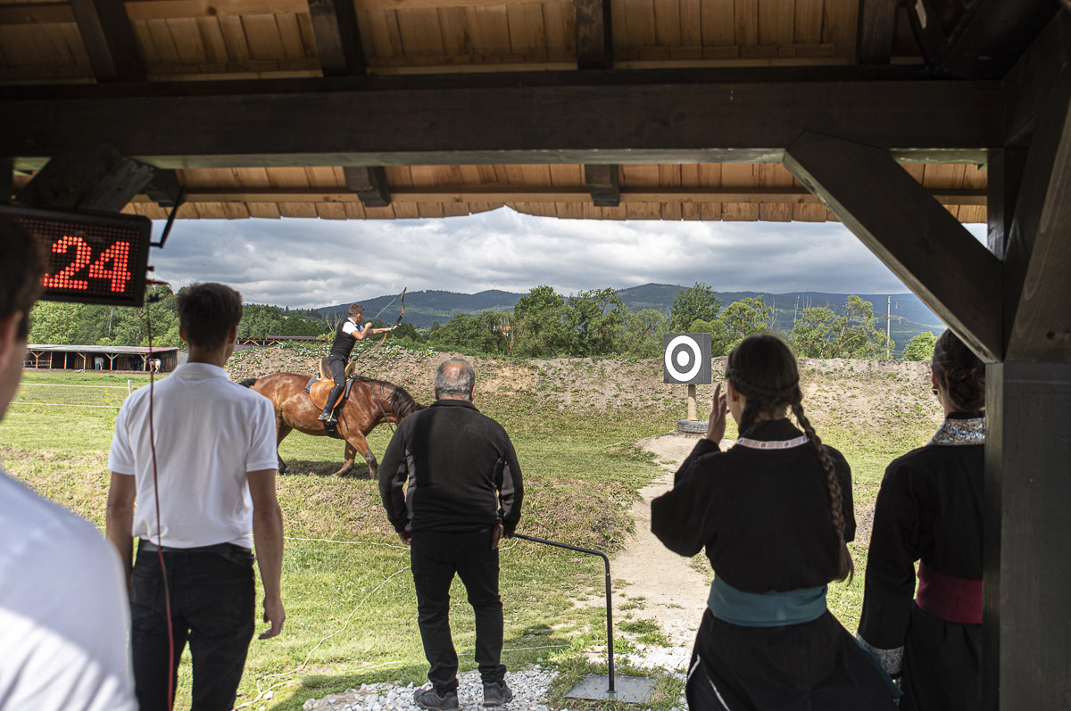 A lovasíjász sportklub vezetője öt évvel ezelőtt nyert felvételt a Kassai Lovasíjász iskolába, majd egy világbajnokságra is kijutott megfigyelőként, ahonnan azzal az egyenes következtetéssel jött haza, hogy „mi, székelyek, nem vagyunk ott a rengeteg ország lovasai között”. Ekkor érlelődött meg benne, hogy ezen változtatni fog: megépített egy székelyföldi gyakorlópályát, ami aztán utat is nyitott a világszintű megmérettetések felé. Lőrincz Rómeó kemény, kitartó munkával és önzetlen támogatások révén valósította meg a központot: a Csibában kialakított Kassai-féle lovasíjász pálya megfelel a standardoknak, hossza 99 méter, középen egy forgó céltáblával, amelyre lőni kell a lovasnak. Az egy híján százméteres távot az íjász 20 másodpercen belül kell teljesítse lovával, miközben annyi nyilat lő ki a céltáblára, amennyire képes. Jelen pillanatban a legtöbb kilőtt vesszőt – tizenkettőt – Csiszér Ivett teljesíti, jegyezte meg Lőrincz. A fiatal csíkszeredai hölgy tavaly került a figyelem középpontjába, amikor 14 évesen Amazon kategóriában világbajnoki címet szerzett lovasíjászatban. A kiváló eredményről akkor lapunk is hírt adott.