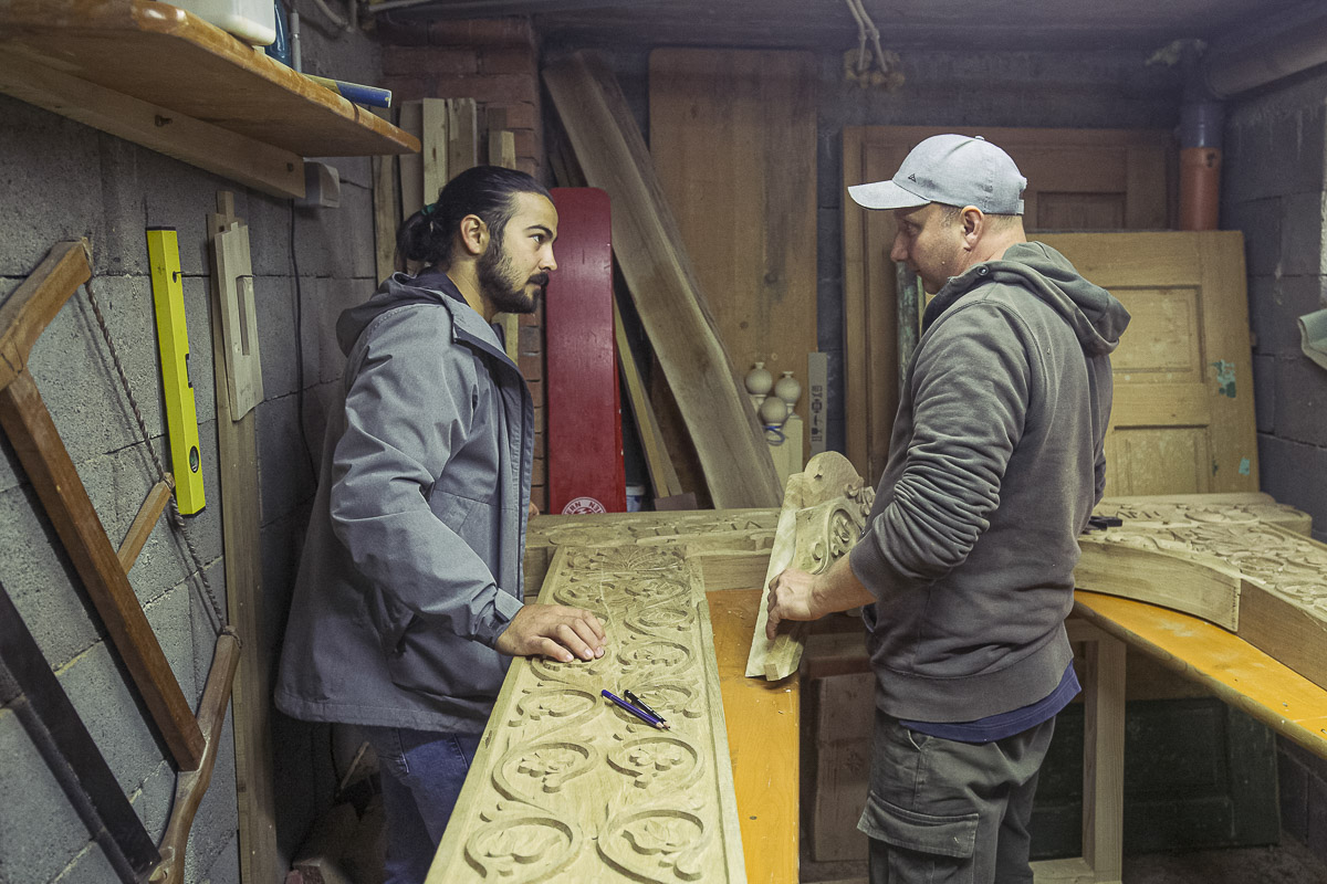 A száradó tölgyfa illatába, a vésők csilingelő hangjába bele lehet szeretni. Idejét sem tudni, mikor alakult ki ilyen szoros kapcsolat anyag és ember között, csak azt látni, hogy ebből az alázattal, göcsörtökkel és évgyűrűkkel teli szerelmes kapcsolatból családi portákat őrző székelykapuk, családtagok emlékeit őrző kopjafák, különféle ornamentikákkal díszített haszontárgyak, szerszámok, bútorok meg rengeteg egyéb eszköz született és születik. Gergely Szabolcs oroszhegyi fafaragómester műhelyében az emberre rátör az időtlenség érzete: a különféle századokból származó, felújításra váró bútorok, a dédnagyapjától örökölt famegmunkáló szerszámok és a jellegzetes tölgyfaillat lelassítja az idő kerekét, más világba repíti a vendéget. Ebben a békében kérdeztük a faragómestert műhelytitkairól, a székelykapuk reneszánszáról, és hogy miért nem szabad vassal bántani azokat.