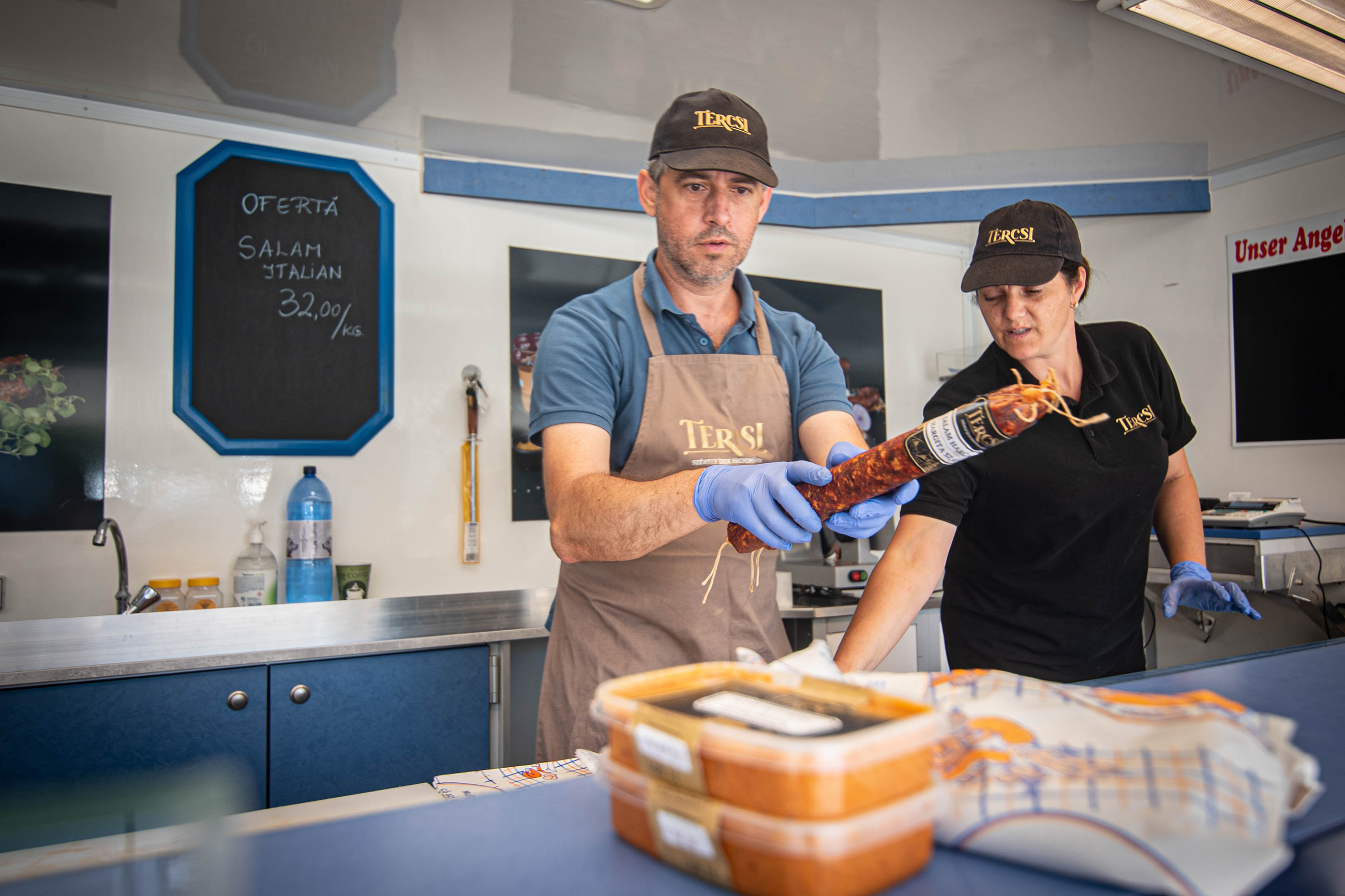– összegzi Kedves Attila, megjegyezve, hogy a Tercsi mozgó húsbolt nemcsak friss húsárut, a székely ízek hagyományát kínálja a fogyasztóknak, de munkahelyet és megélhetést is biztosít a helyieknek, miközben folyamatosan fejlesztik a tevékenységet és bővítik a kínálatot. A csapat azzal a céllal indul útnak mindennap, hogy Székelyföld lakói friss, minőségi és ízletes húsáruhoz jussanak. A Tercsi név egyre ismertebbé válik, mint fogalmaz, minden útjuk, minden eladott termék a helyi közösség megerősítését és elégedettségét is szolgálja. A Tercsi mozgó húsbolt nemcsak húsárut kínál, hanem élményt is, az a pont, ahol a vásárlók mindig számíthatnak a barátságos kiszolgálásra és a kiváló minőségre – mondja.