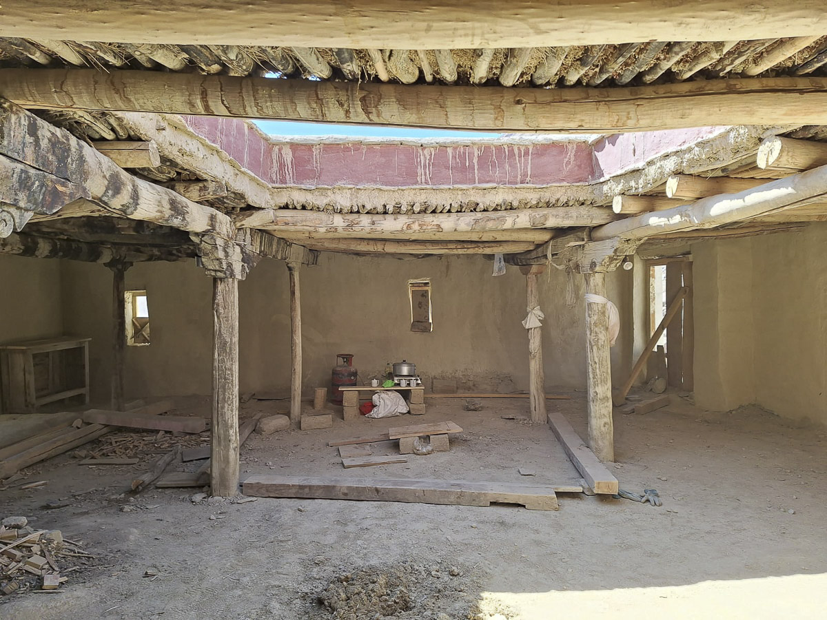 Zanglában Sonamot, a helyi asztalost kellett megkeresnünk, akit hamar meg is találtunk. Ő szólt Stanzinnek, a zanglai hercegnek [Stanzin Namgail nemrég lett a zanglai király, sokan még hercegként emlegetik – szerk. megj.], aki elmondta, hogy a faluban kinél vagyunk elszállásolva. Gyatso, a boltos és a családja fogadott be minket az otthonába. Nagy vendégszeretettel és finom teával vártak, össze is barátkoztunk Pamival, Gyatso legidősebb lányával és Pami kisfiával. A házban a nagyszülők, szülők, Pami és testvérei, illetve a gyerekek együtt élnek. Szobánk egyszerű, ablakai a hegyekre néznek, a matracok a földön vannak, két kis éjjeliszekrényünk van. Este átmentünk a szomszédba, Sonamhoz, ahol három önkéntes van elszállásolva. Esténként itt szoktak összegyűlni az önkéntesek. Megbeszéltük a következő napi terveket, majd megkóstoltuk a helyi kemény érlelt sajtot. Mint kiderült, a zanglai apácazárdába érkezett egy francia sajtmester, aki a helyi apácákat sajtkészítésre tanítja. Friss házi sajtot, mozzarellát, és kemény érlelt sajtot készítenek eladásra, illetve a hegyoldalakon növő kapribogyót is begyűjtik, majd eladják.
