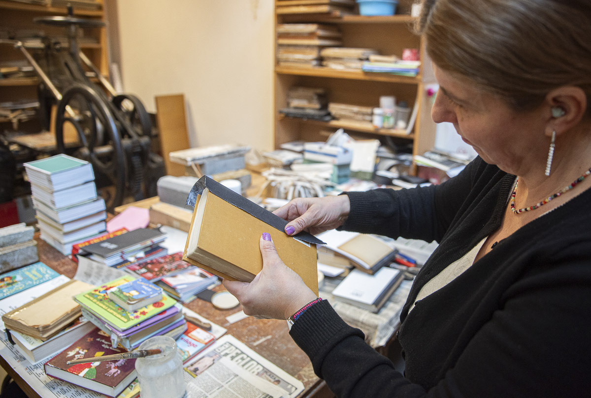 Több mint százéves gépek segítségével lehel új életet a régi könyvekbe Csiszér Barbara Julianna, a Kájoni János Megyei Könyvtár könyvkötője. 2012-ben, 16 év textilipari munka után kereste meg a könyvtár akkori igazgatónője és ajánlotta fel neki a könyvkötői munkát.
