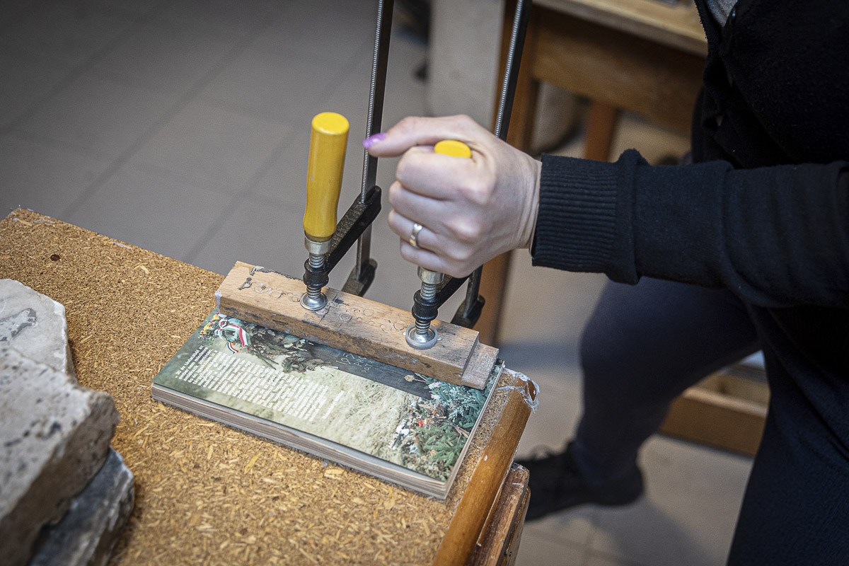– Minden példány újrakötéséhez más-más fogások, műveletek alkalmazása szükséges, hogy a könyvek egykori formáját vagy annak töredékét visszanyerjék. Némely könyv ragasztásra, netán íves varrásra vagy gerinccserére szorul, de arra is van példa, hogy a kötet szakadt lapjait kell kiegészíteni