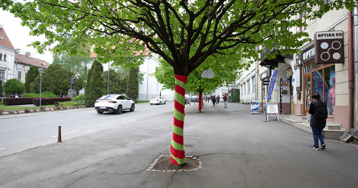 Azért, hogy minél változatosabb célcsoportot érjenek el, a város különböző forgalmasabb helyszínein található fákat burkolták be színes textilekbe, így többek között a városi parkban, a városközpontban, a Márton Áron téren, a szombatfalvi útkereszteződés mellett, a nagypiacnál és a lakónegyedekben is találkozhatunk a napokban, pontosabban egészen a hónap végéig egy-egy „hírvivő” fával. Az üzenetek között van olyan, amelyet több helyre is kihelyeztek, de van, ami teljesen egyedi, ilyen például a város egyetlen nagy platánfáján elhelyezett táblácska. A városi parkban található fán Platán Péter arról „beszél”, hogy egy felnőtt platán 27 ezer köbméter oxigént termel, 2,7 tonna port köt meg, gazdasági értéke pedig 600 ezer lejre tehető!