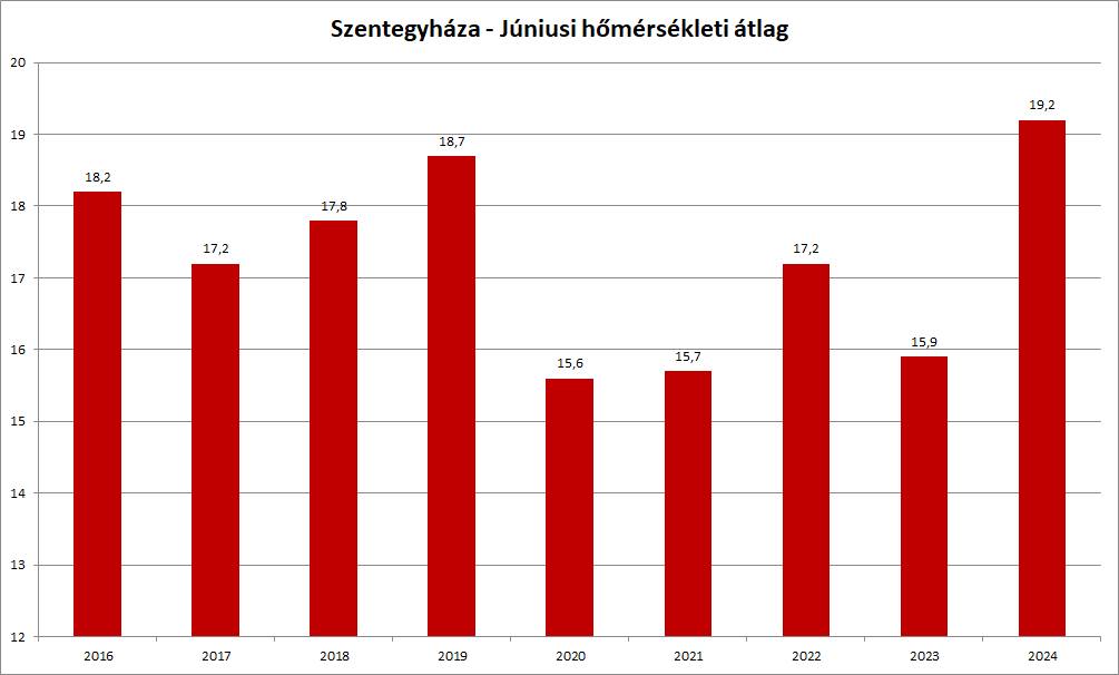A szentegyházi meteorológiai állomás Facebookon tett bejelentése szerint az idei június az elmúlt évtized legmelegebb hónapja volt. Az állomás adatai alapján 2024 júniusa éppen csak meghaladta a korábbi, 2019-es rekordot.