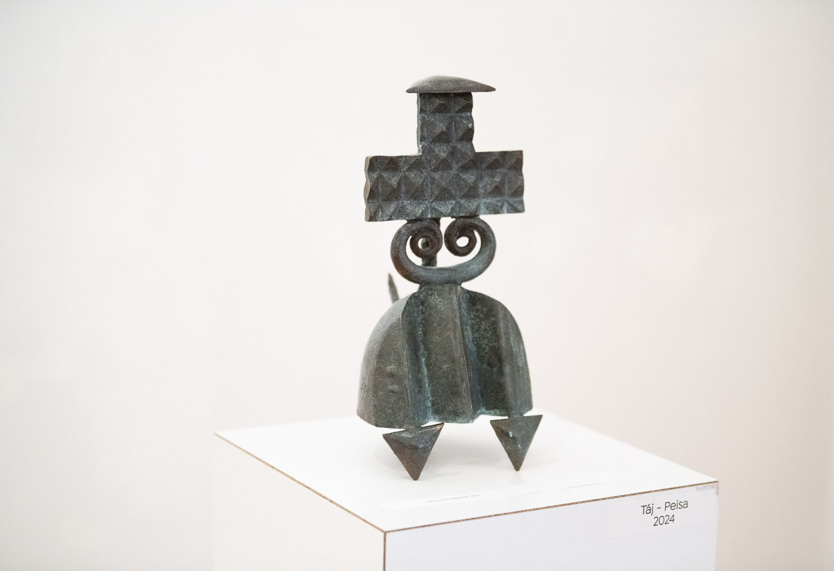 Sánta Csaba több mint három évtizede alkot aktívan, kisplasztikái és köztéri alkotásai az országhatáron túl is ismertek. A Bronz kisplasztikák az archaikum jegyében című retrospektív tárlatot az alkotó kisplasztikáiból állították össze melyeket mára a művész védjegyévé vált stílusjegyek jellemeznek: primitív, ősi kultúrákat megidéző formavilág, tömör, a népies humort sem mellőző játékosság. A művész egyik önvallomásában rámutat: „Kisplasztikáim elemeit nem a közelmúltból, hanem a kultúra és a mítosz mély rétegeiből válogatom. Általában a népművészethez nyúlok vissza, főleg a régi kovácsoltvasak indították el a művészetemet, illetve ezekből ihletődöm sajátos módon. A környékbeli épületek, a népviselet motívumaiból, ornamentikájából.” Az alkotó munkásságát és a tárlatot dr. Szücs György, a Magyar Nemzeti Galéria művészettörténésze méltatta, melyet a Finálé kvartett előadása egészített ki. A kiállítás április 21-ig, hétköznapokon 9–16 óra között látogatható.