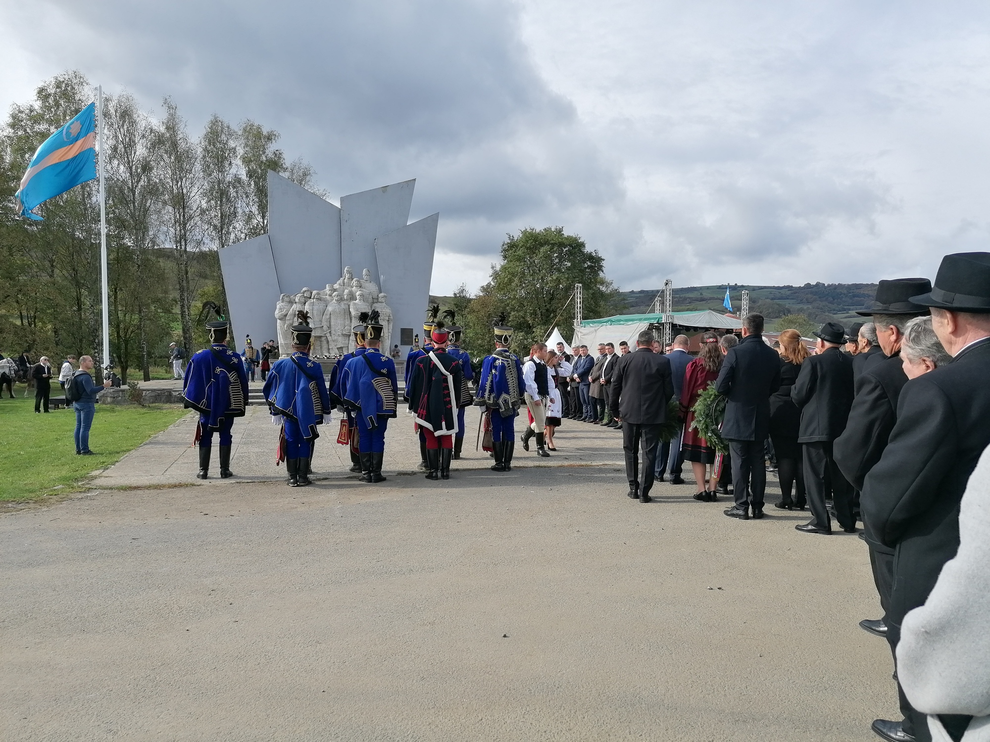 Délelőtt tizenöt helyi és környékbeli hagyományőrző lovas huszáregyesület vonult fel az emlékmű előtt, ahol zászlófelvonással kezdődött a megemlékezés. A szabadtéri istentiszteletet megelőzően az emlékműnél koszorút helyeztek el a helyi és megyei önkormányzat, az RMDSZ helyi és udvarhelyszéki szervezetei, Magyarország Csíkszeredai Főkonzulátusa, kulturális egyesületek és oktatási intézmények képviselői.