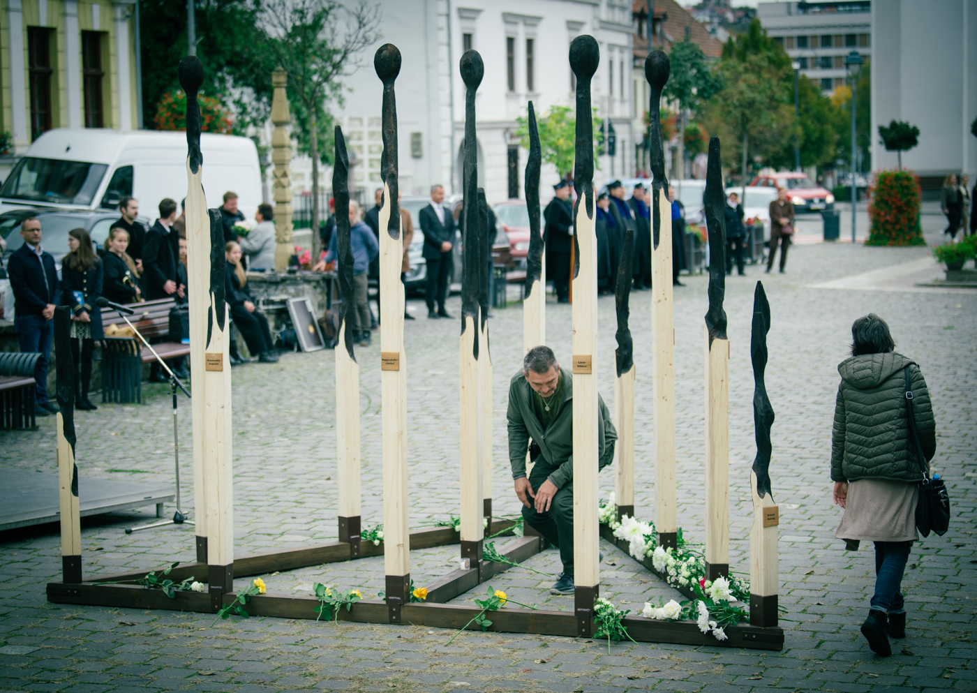 A fenyőfa pedig, amelyből ez az ideiglenes emlékmű készült, minket, a székelységet is közelebb hozza az aradi és a budapesti eseményekhez, hiszen ezen a napon azokra a felmenőinkre is emlékezünk, akik szembe mertek szállni az elnyomással, fejtette ki a művészettörténész.