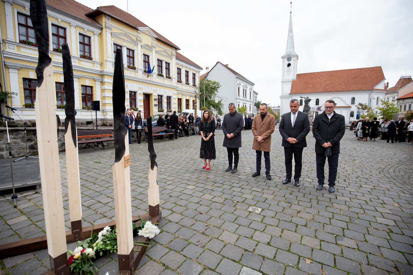 A megemlékezésen bemutatták azt az ideiglenes emlékművet, amelyet Kövecsi Kovács Imre udvarhelyszéki szobrászművész alkotott meg az aradi vértanúk napjának emlékére.