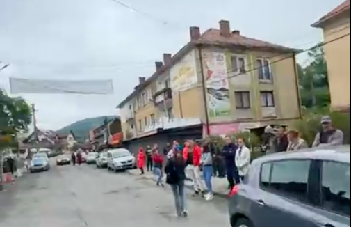 Közel százan gyűltek össze a parajdi sóbánya vezetésének székháza előtt miután a bányából kimenekítették a bányászokat és elzárták annak bejáratát.