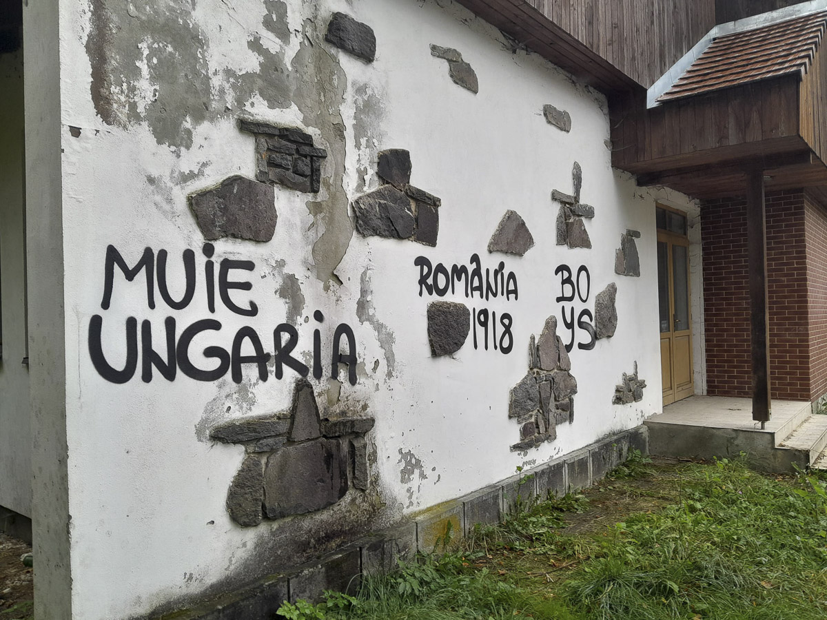 A szejkefürdői mofetta sem úszta meg a szombati FK Csíkszereda – Kolozsvári U meccsre érkező ultrások gyűlöletből fakadó rongálását: a kihasználatlanul álló, gyógykezelésre szánt épületre három falfirkát festettek, amelyek között van egyértelműen konfliktus- és gyűlöletkeltő.