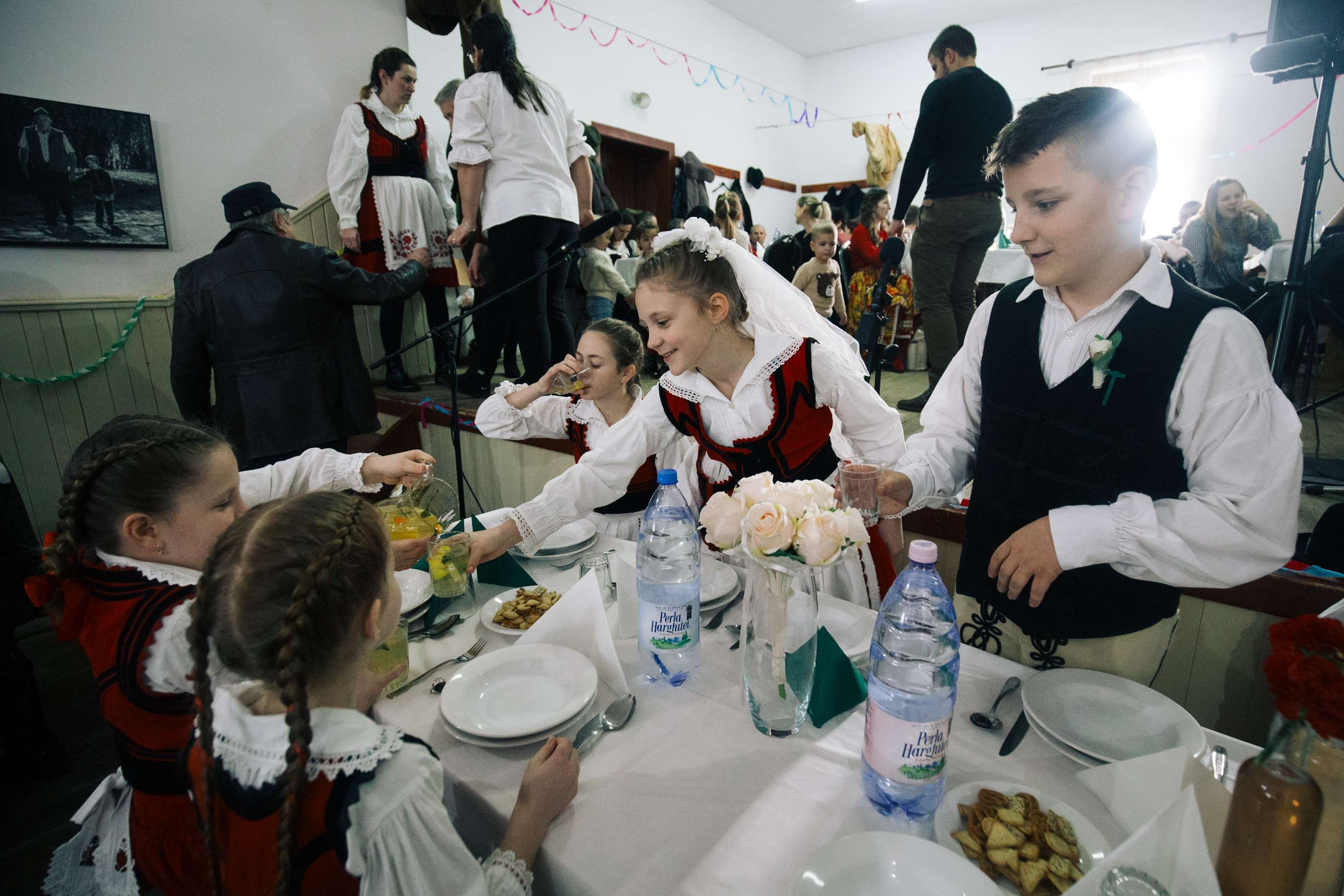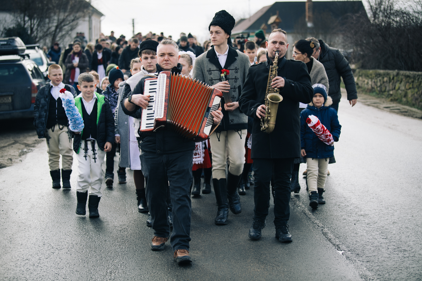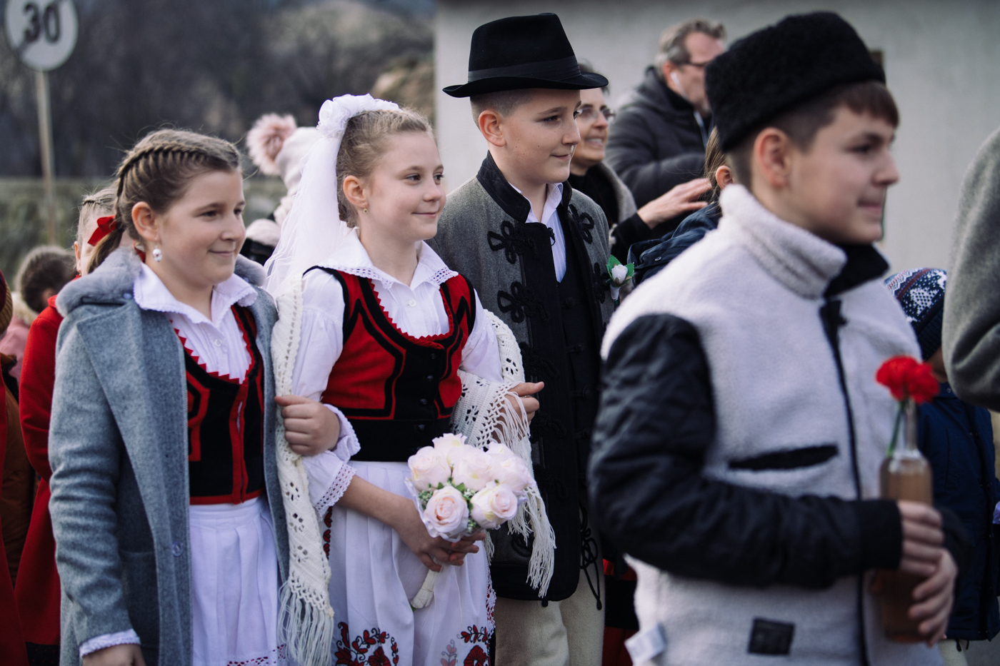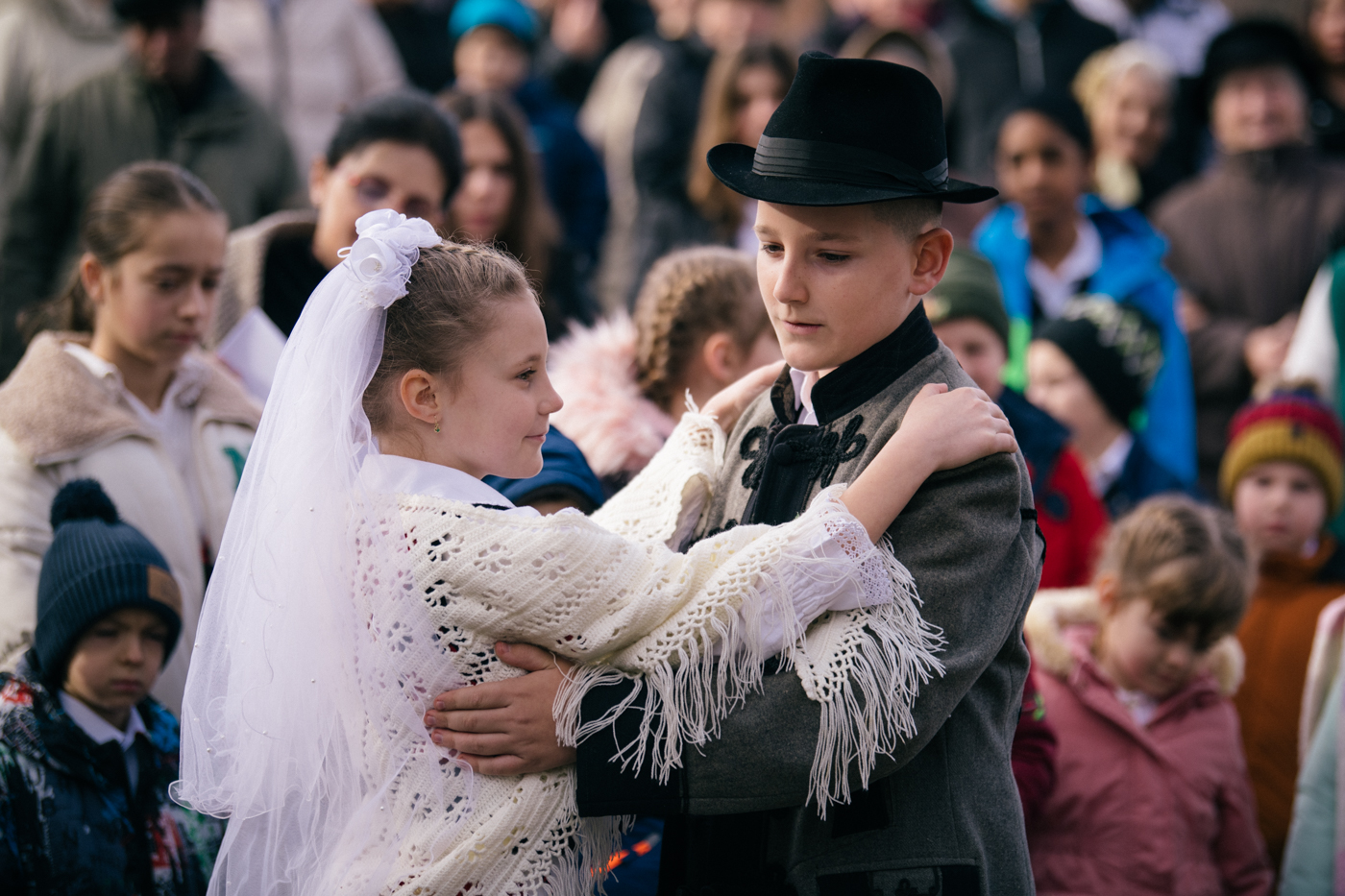 – Maguktól jelentkeznek, nem kell senkit noszogatni, sőt! Menyasszonyt nem választunk, az a fiú feladata lesz, hogy hívjon maga mellé társat. Idén a menyasszonyunk Oklándról érkezett, így sokan jöttek onnan is vendégek, így ez a lakodalom már nemcsak a karácsonyfalviaké, hanem az egész község ünnepévé vált – részletezte. Idén 35 gyermek vett részt a lakodalmasban, különböző szerepeket betöltve, vagy csak a násznép sorait gyarapítva.