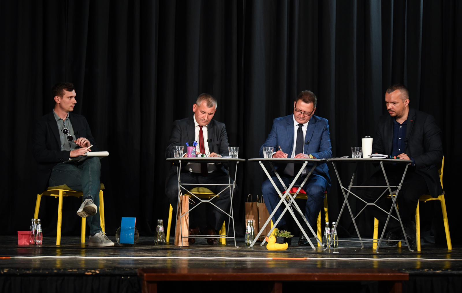 A polgármesterjelöltek vetélkedője rövid bemutatkozóval kezdődött, ahol az eseményt követők megtudhatták, hogy Ember Attila erőssége a sakkozás, Gálfi Árpád fiatalkorában színjátszó csoportba járt, és Szakács‑Paál Istvánnak a világ ötven országából van már egy‑egy bögréje. A vetélkedő moderátora, Szilágyi István külön kiemelte, hogy szeretnék a komfortzónájukból kibillenteni a jelölteket, így a négy részre osztott pódiumbeszélgetés kérdéseit is ennek megfelelően állították össze.
