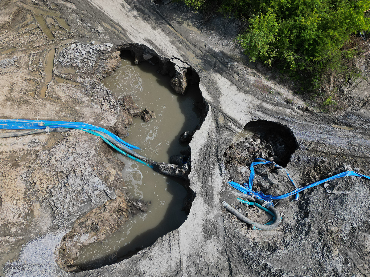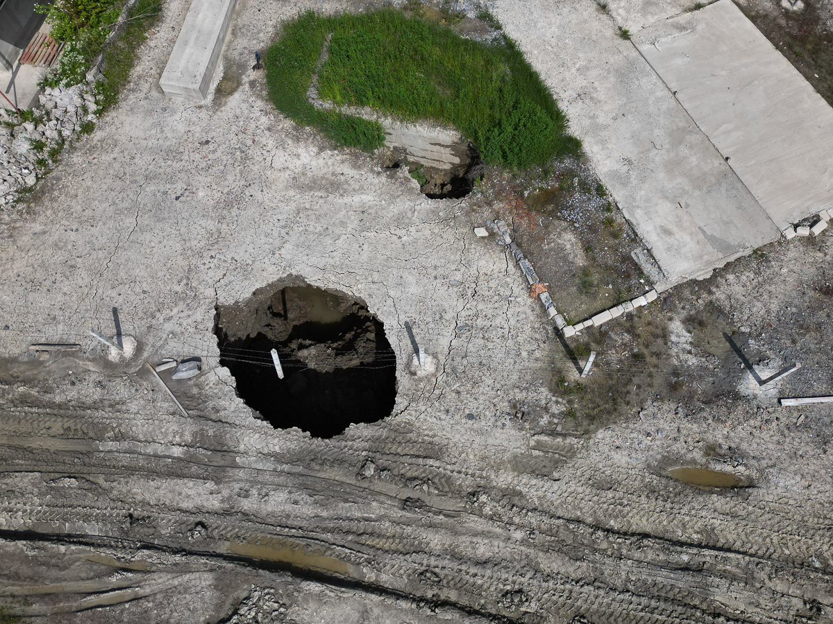 A bányatárnák felett folyamatosan omlanak be újabb talajdarabok. Helyenként látni, ahogy a töltés és a sóréteg megszakadozott, csak idő kérdése, mikor roskadnak azok is a vízbe.