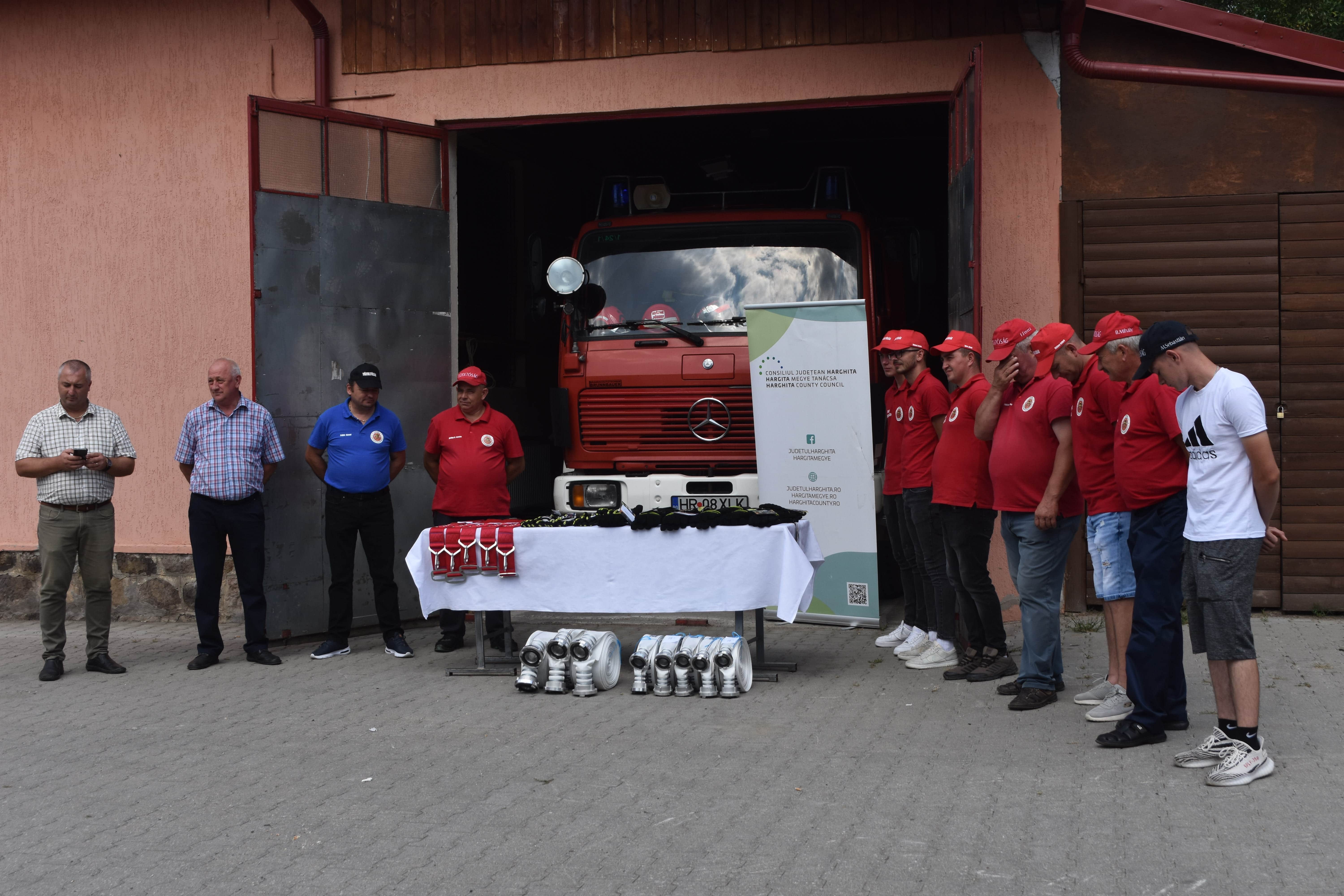 Bemutatták és hivatalosan is átvették a sóvidéki önkéntes tűzoltó-egyesületek a Hargita Megye Tanácsa által meghirdetett és elnyert pályázati összegekből vásárolt eszközöket.