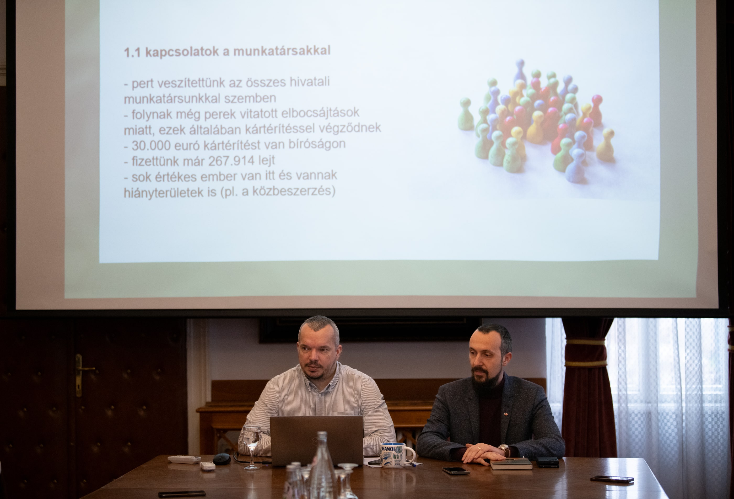 Szakács-Paál István kiemelte, hogy az új városvezetés egyetlen hivatali alkalmazottat sem bocsátott el, márciusban készülnek a hivatal szerkezeti felépítésének megváltoztatására, és átalakítanák a hivatal működését, addig pedig mindenki megkapja a lehetőséget, hogy bizonyítsa rátermettségét. A polgármester közölte, az új városvezetés az elmúlt két hónapban intenzív kapcsolatteremtést kezdeményezett az oktatási, kulturális és egyéb alintézményekkel, valamint a civil és szociális szervezetekkel a közös együttműködés kialakítása érdekében.