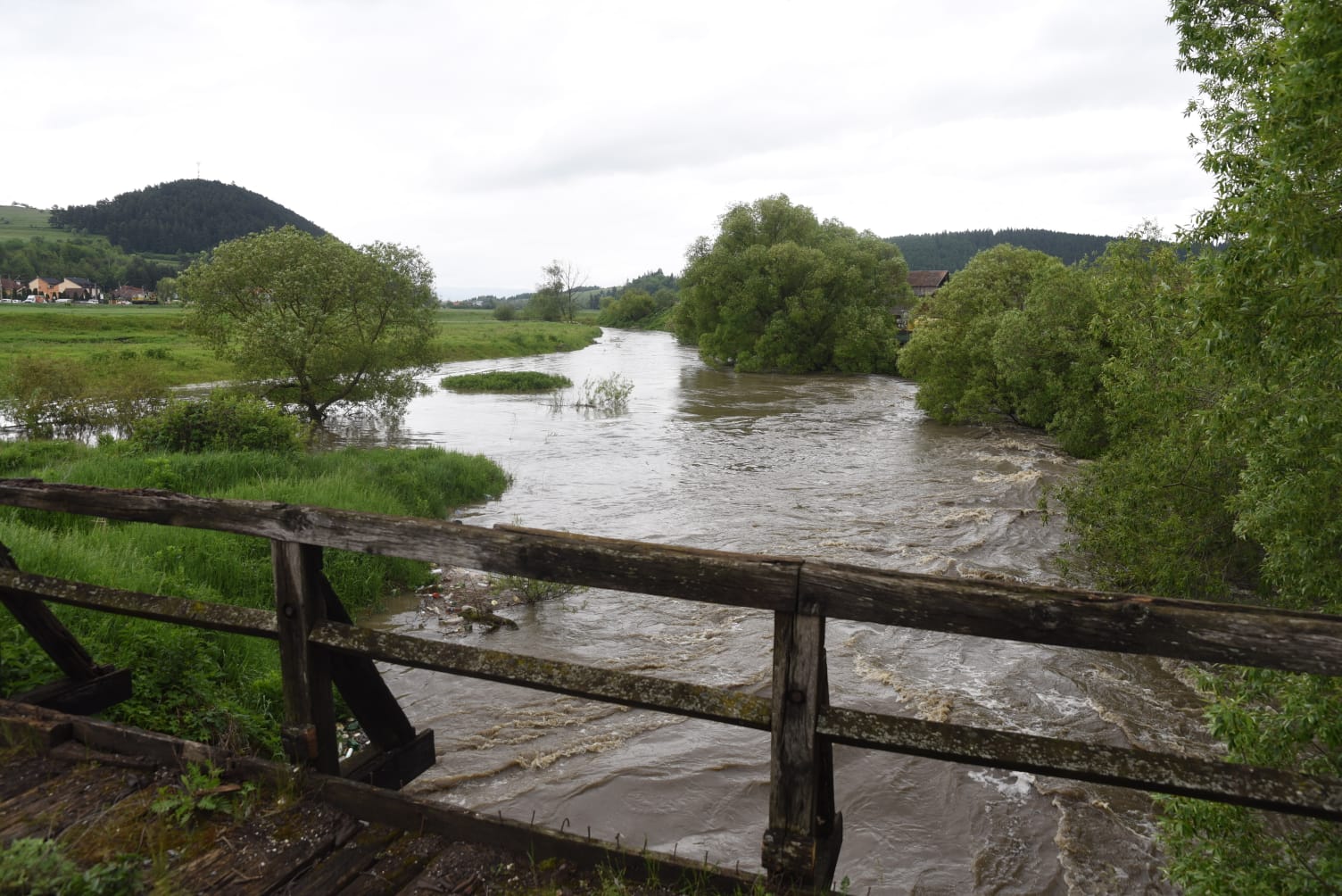 Nyágrus László, Parajd község polgármestere szerint a Korond-patak vize annyira megnőtt, hogy elárasztotta az alsósófalvi rétet.