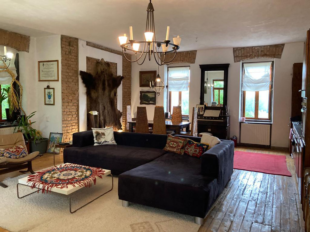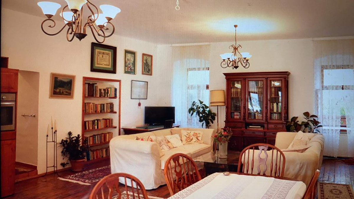 „Nem szeretem, ha múzeumos egy lakás. Legyen élhető a tér a 21. században is” – magyarázza vendéglátónk, mégis, mintha történelemmel, kultúrával lenne átitatva a hatalmas helyiségek minden szeglete. „De azt sem szeretem, hogyha teljesen személytelen, »katalóguslakás«. Egy régi épület kéri a régi bútordarabokat, mert egy régi épületnek históriája van, hazajáró szellemei vannak, az ódon falak közé hiába raksz sorozatbútort. De az se jó, ha múzeumosan dohos egy otthon” – indokolja a minden részletében ideillő, de mégis élhető berendezés koncepcióját.