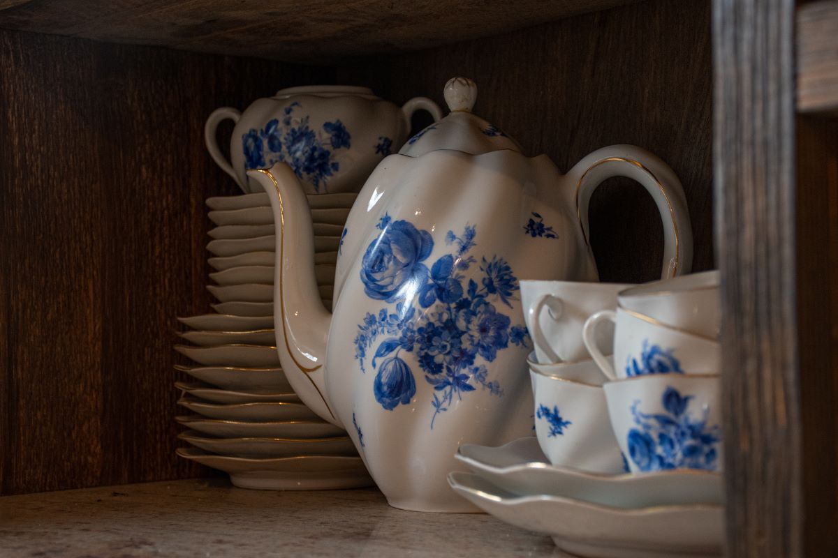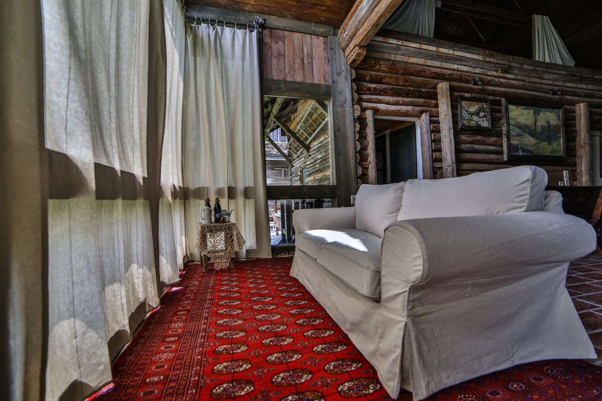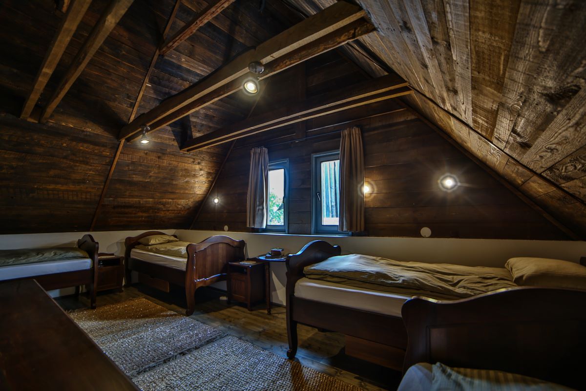 A konyha is kincseket rejt: a Keresztes család megmentett porcelánkészletét. A mennyezetet a kakasülőig gyalulatlan, szőrös deszkával burkolták, csak a létra hiányzik a szemnek, ha túl magasra tévednénk a bámészkodásban. Nyikorgó falépcső kanyarog az udor felé, a lepihenni vágyó vándornak telitalálat ide megérkezni. Az ágyakat a rózsagyökér betétes családi bútordarab alapján készítették el, megtoldva pár centivel a magasra nőtt ember igényeihez igazodva.