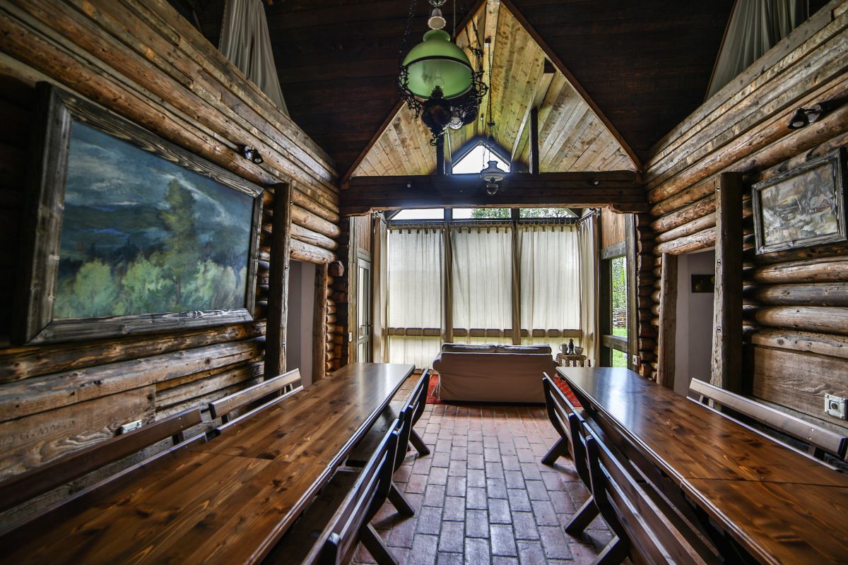 Tágas helyiségbe érkezünk, a középcsűrbe, amelynek befogadóképességéről két hosszú cserefa asztal árulkodik. Az embernek pillanatnyi kétsége sem lehet afelől, hogy egy csűrben van. A fagerendák látványa, a segesvári téglával padolt „beálló” időutazásra hívja a vendéget. A födém kézzel vetett baconi cserepeit a brassói Fekete templomtól örökölték.